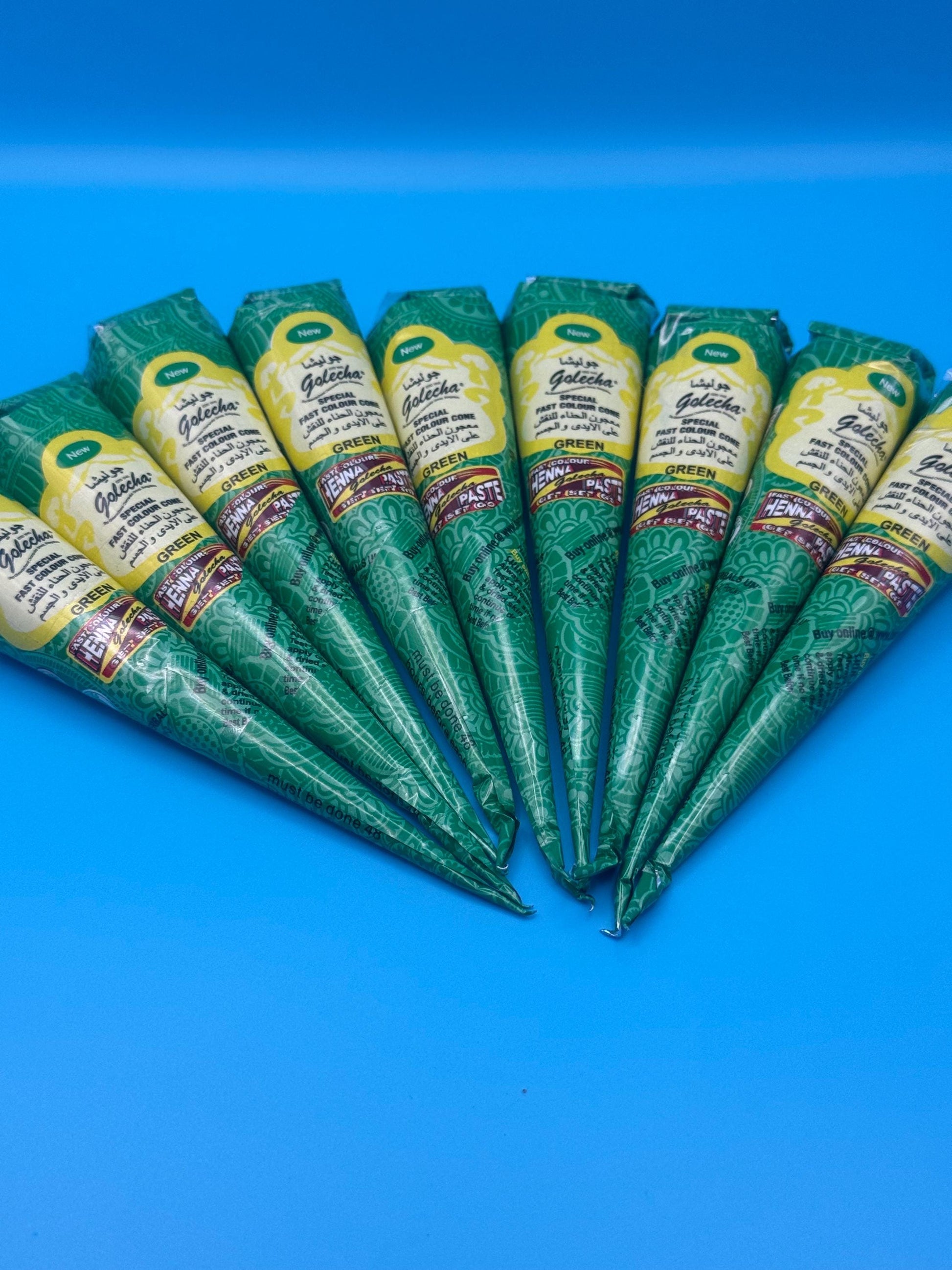 Our 2pcs Green Henna Cones provide a safe, natural option for temporary body art with vibrant green color. Designed for smooth, precise application, these cones are ideal for detailed designs that fade naturally over time. Perfect for artists seeking high-quality temporary henna with a striking, non-permanent finish.