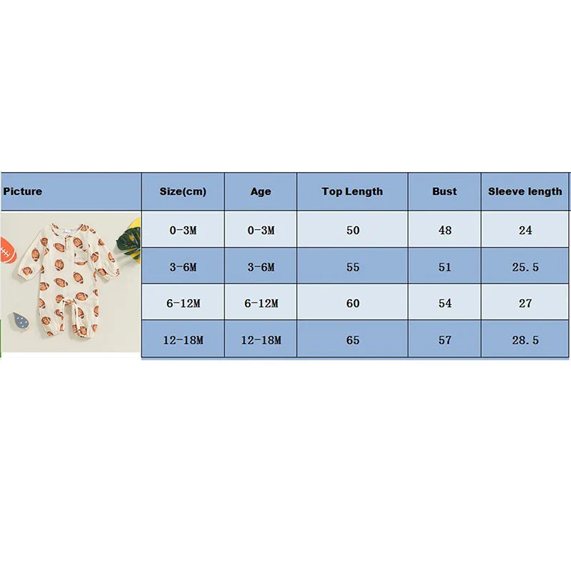Baby Boy Girl Bodysuit Football Print Long Sleeve Button Pocket Round Neck Fall Romper