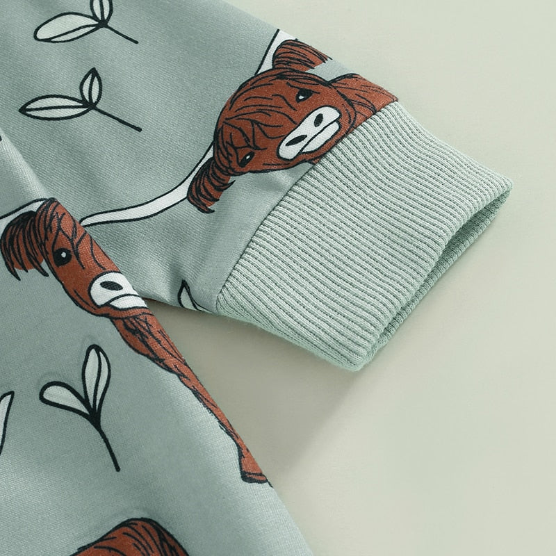 Baby Boy Girl Bodysuit Long Sleeve Crew Neck Bison Highland Cow Bull Print Bubble Romper