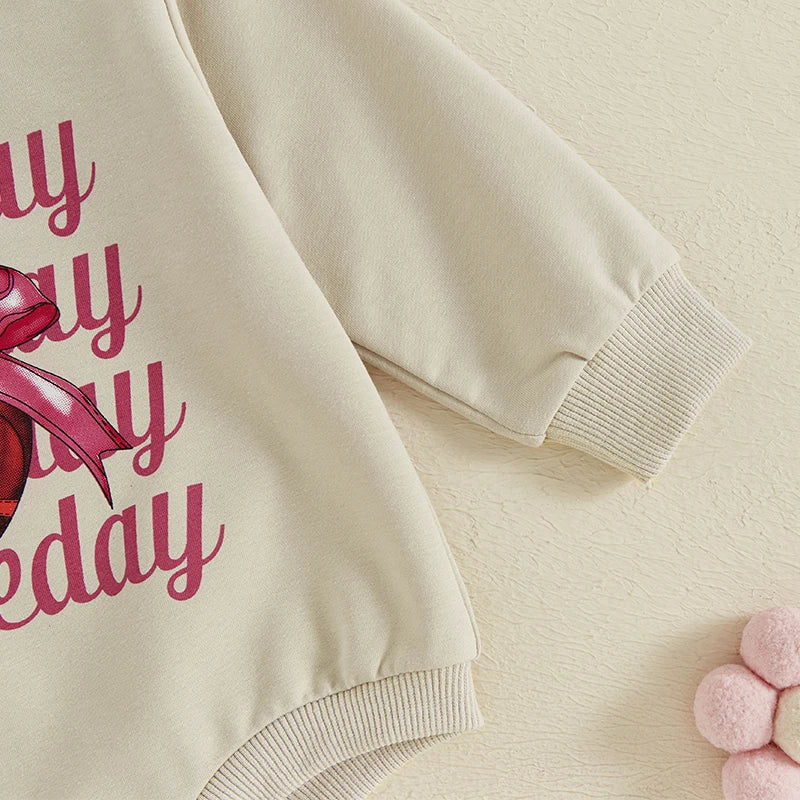 Baby Girls 2Pcs Gameday Football Letter Bow Print Long Sleeve Bubble Romper Headband Outfit Set