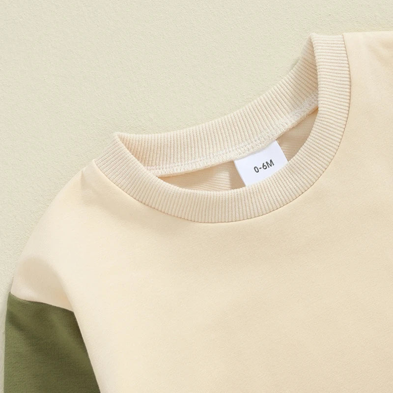 Baby Toddler Boys 2Pcs Fall Outfit Contrast Color Long Sleeve Top and Long Pants Set