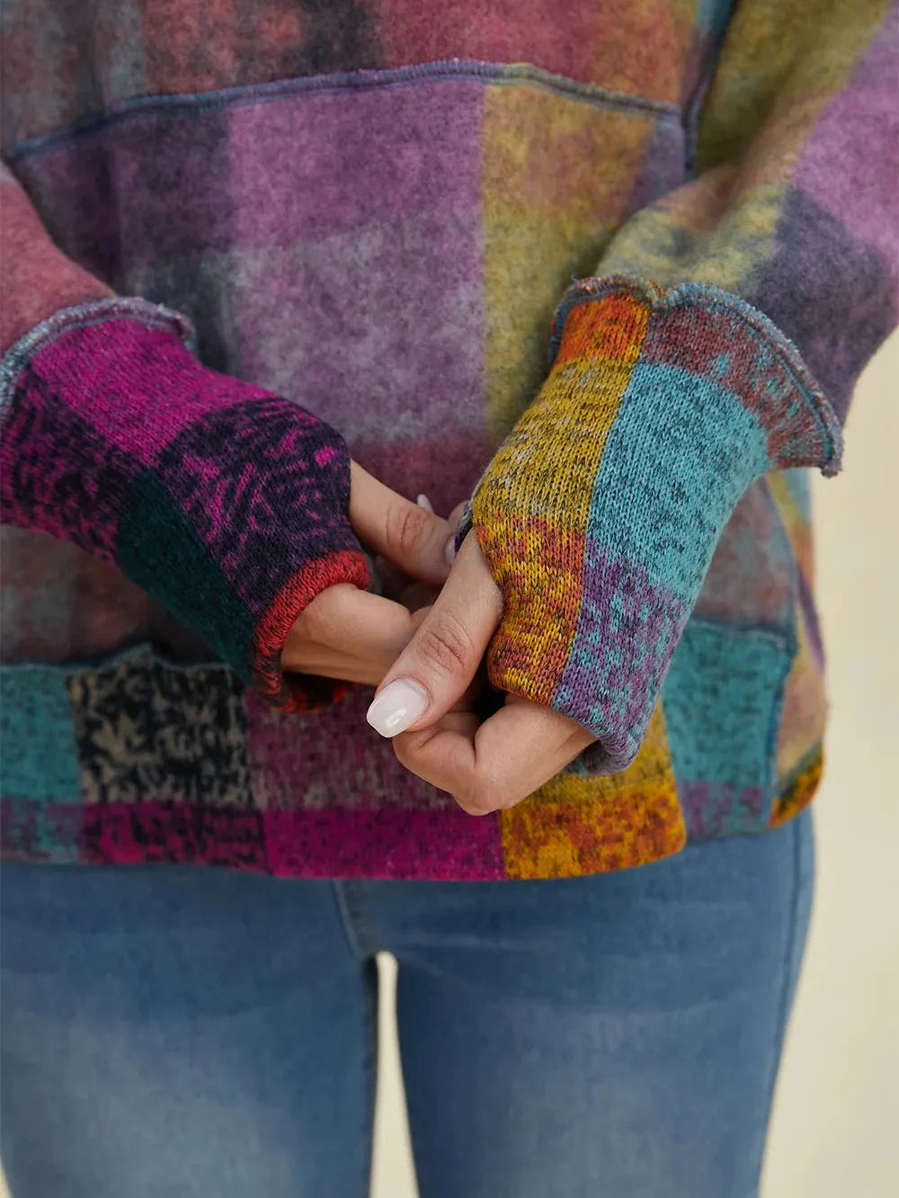 Double Take Full Size Plaid Dropped Shoulder Fleece Hoodie