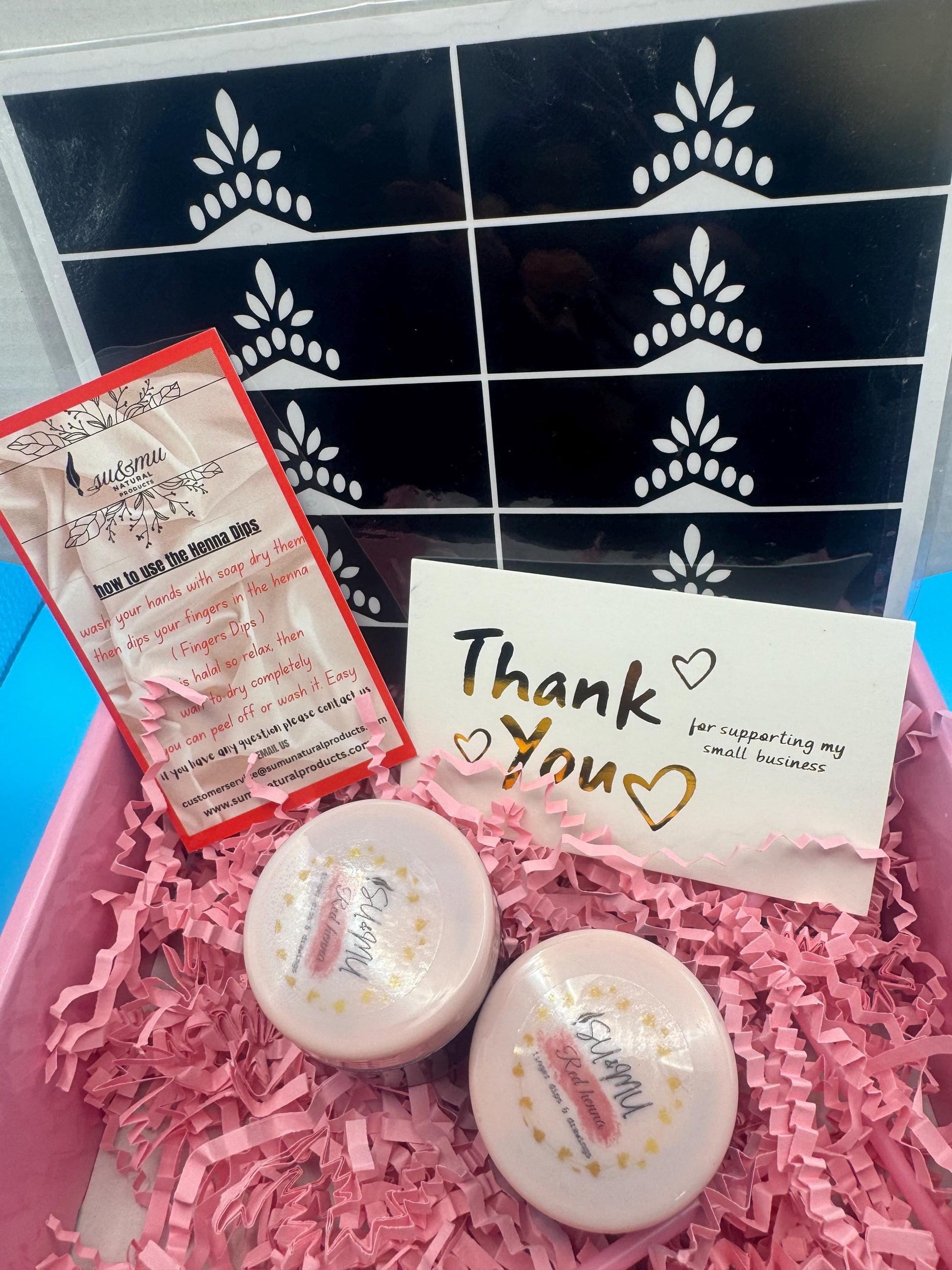 The Sister Henna kit, it's finger henna and for drawing henna or temporary tattoos easy to apply dry fast easy peel off