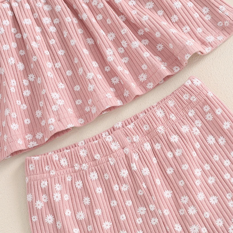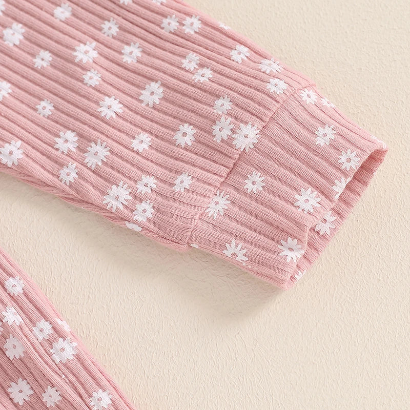 Toddler Kids Girls 2Pcs Fall Outfit Floral Flowers Print Crew Neck Long Sleeve Babygirl Top Elastic Waist Long Pants Set